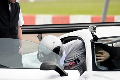 There's no room for eating inside though, and fatties will have a job folding themselves past the tight roll cage and into the uncompromising race seat. Five-point harness tightened, I'm suddenly glad I missed dessert at lunch, and then I'm struck by the layout of the cabin. Closely following that of the road car the dash top even retains the stitching where the passenger airbag would normally be, while the familiar centre console shape is devoid of any normal switchgear save for a circular air vent. Of course there's all manner of other controls here, including ones that definitely shouldn't be touched by mere passengers. There's also a small Scottish man behind the squared-off suede steering wheel who goes by the name of Allan McNish.