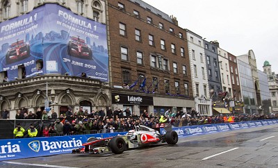 Despite piss-poor weather in the capital over 100,000 spectators turned out on Sunday (June 3) to see one of the most exciting motorsport events ever to hit Irish shores. While there was no competition element to Bavaria City Racing Dublin it did allow Irish fans to get incredibly close to the cars and the day's action was headlined by none other than Jenson Button in his Vodafone-sponsored McLaren-Mercedes Formula One race car.