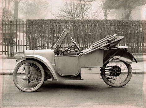 Fitted with a 7hp Peugeot V-twin engine the Runabout excelled at motorsport events such as the London to Exeter Trial and reliability events at Brooklands Autodrome, but proved unsuccessful with the public due to its single-seat configuration and old-fashioned tiller steering system. A two-seat version, launched in 1911 and fitted with a steering wheel, was much more successful with posh London department store Harrods featuring as the first dealership.