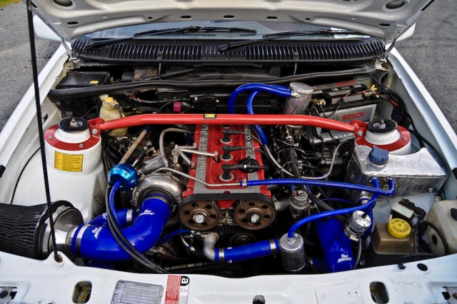 The god of Garrett has awoken and is now force-feeding compressed air into the previously docile YB (John has fitted an RS500-spec turbo), and things are coming at you awfully fast and at a slight angle. The rear tyres shrug their sidewalls and don't even try to contain the forces now coming through them, so the only option is to change up a gear and try again. There's an almighty chatter as excess boost pressure gets vented, third finally engages somewhere in the bowels of the Borg-Warner gearbox and the whole process starts again, only with added speed. Tackling a sequence of corners takes the form of playing chicken with the loud pedal until the steering wheel is dead straight, and even then the spiky power delivery makes it difficult to piece together any sort of rhythm. The steering feels inert after the BMW's, but the brakes and damping are excellent, something you're grateful for as the boost takes you toward the horizon at an alarming rate. Planting your right shoe in fifth gear is met with a lift of the nose and a thrust that still pins you into your seat, so in the wet this car must be a complete handful. The Cosworth is proper scary in the best tradition of old-school turbocharged monsters, and you'd better be on your toes to stay on top of it.
