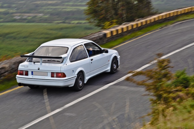 After Group B rallying's demise and the subsequent banning of Ford's RS200 in 1986, the Cossie was pressed into service on the stages, with mixed results. Two-wheel drive hampered it on all but the driest of tarmac, and gravel rallies were a sobering experience against the might of the all-wheel-drive Lancias and Toyotas. The car had more success at national level, and numerous examples raced on Irish roads driven by the likes of Bertie Fisher, Kenny McKinstry and Frank Meagher. A young Colin McRae even tried his hand in a few examples, leading to some large bills for the Boreham team as the Scot found his own and the car's limits, usually by going far beyond them.