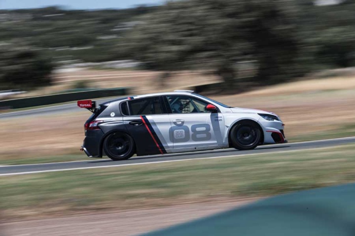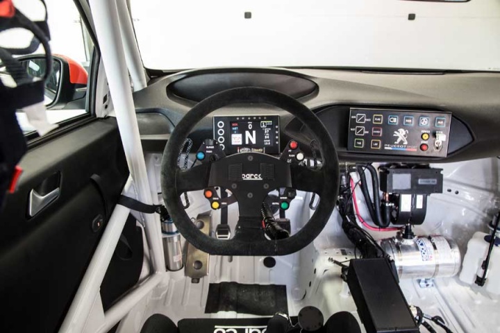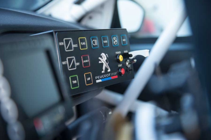 Less cute, but certainly purposeful, is the bodywork, which has been stretched and distended by Peugeot Sport’s designers, to keep enough of the production shape intact for marketing purposes, but also to generate actual downforce and keep the thing pinned to the track. Hopefully.