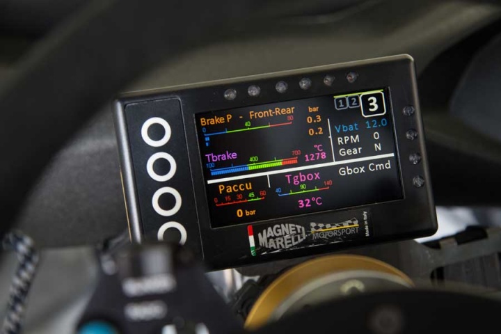 Yeah. Running costs are exactly what’s on my mind as I’m further instructed to hold down the green Neutral button, put the clutch pedal down (you only need it for stopping and starting) and tug the right hand gearshift paddle (made of carbon-fibre, natch) and there is a sharp, gunshot, ‘clunk’ as first gear is selected. Now just pull away and head down the pit lane.