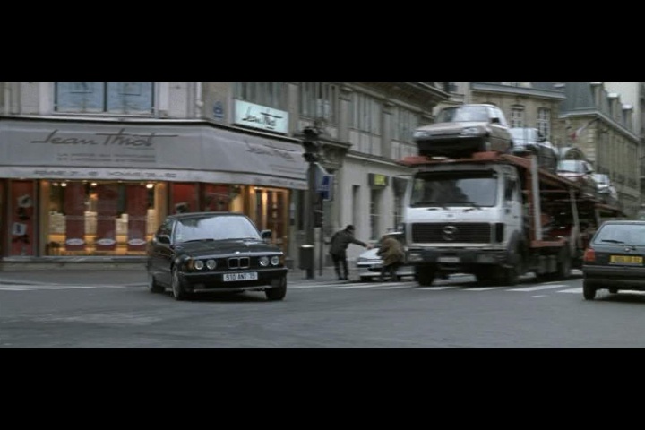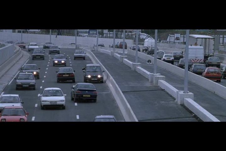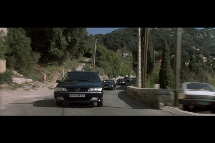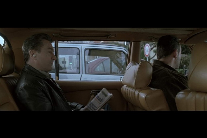 This one's the daddy of them all. Sam and Vincent have been double-crossed by everyone and are determined to get the case for themselves. They find the Republicans, Deirdre and Seamus O'Rourke (Pryce) and, again, in an attempt to snatch the case, a chase ensues. It's complete mayhem. The two cars, a BMW 535i, driven by Deirdre and a Peugeot 406 driven by Sam, careen pell-mell through the streets of Paris with scant regard for the safety of pedestrians or other motorists. It's quite remarkable that an old 406 is able to keep up with a 535, but that's movie magic. They plough the wrong way up motorways, hundreds of oncoming cars trying to avoid them. Rumour has it that the stunt drivers in the oncoming cars weren't flashing their lights at the drivers in the BMW and Peugeot for the sake of realism, but rather it was a kind of code that they developed in order to communicate with each other during the fast-moving chase scenes. When you see McElhone and De Niro looking terrified behind the wheel, that's because the stunt cars were actually right-hand-drive with a fake steering wheel set-up on the passenger side to give the illusion that the actors were driving.