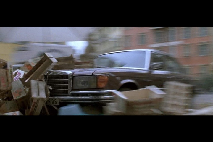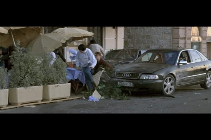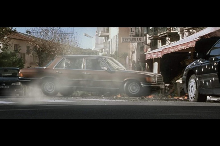 The village ambush doesn't go according to plan though and one of the 605s gets blown-up, the other two, along with the XM escaping. Vincent (Jean Reno) gives chase in the Merc, throwing it around like a sports car until it catches up one of the Pugs on a twisty mountain road and Sam (de Niro) pops out of the sunroof and shoots at it with some class of bazooka that causes it to meet a fiery end. Meanwhile, Larry in the Audi goes after the wonderfully floaty barge of a Citroen, chasing it off-road over some tremendous jumps and finally, down into the narrow streets of Nice. Oh! A vegetable seller! That can only mean one thing - yes that's right, it's getting a Citroen, an Audi, an old Merc and a Peugeot driven through it with hilarious (and probably financially ruinous) consequences. The chase ends in a shootout and a crash into a crowded café full of people (best not think about the utterly horrific consequences too hard, eh?). The Merc is the only car to survive the chase. Apparently, the actor Skip Sudduth that plays Larry, the Audi driver asked Frankenheimer if he could do his own stunt driving to which Frankenheimer replied "Sure, but I don't want to see any brake lights."