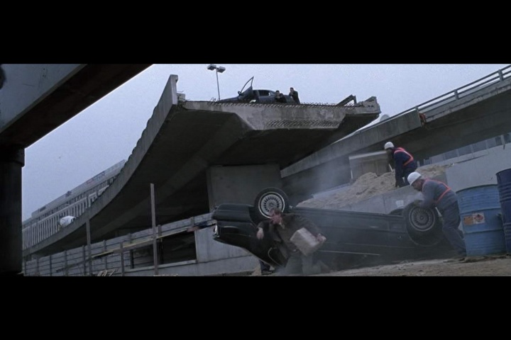 Meanwhile, the police try to pursue these madmen leaving a trail of death and destruction behind them, but their Citroen ZX cop cars simply aren't up to much and they ignominiously topple over onto their roofs. The editing is fast, the music is pulsating and the camera angles give a tremendous sense of speed. For realism's sake, the cinematographers didn't mess with the frame rate and so what you see isn't speeded-up footage. The BMW meets a fiery end as it plunges off an unfinished motorway exit ramp, though the occupants miraculously escape. It is said that 80 vehicles were destroyed in the making of Ronin - we'd well believe it.