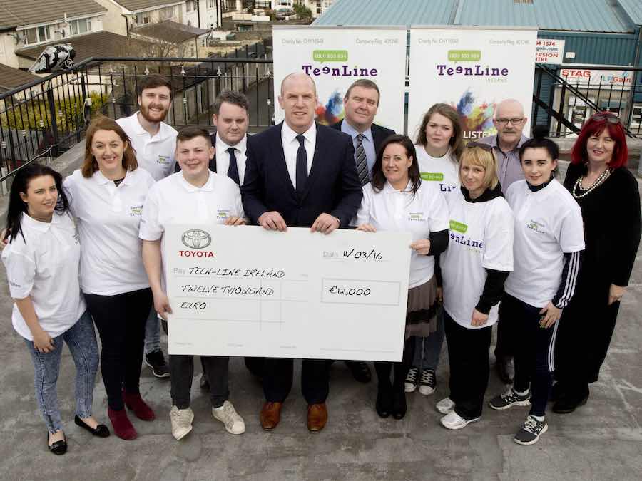 Mar 2016 Toyota ambassador Paul O’Connell hands over cheque to charity.